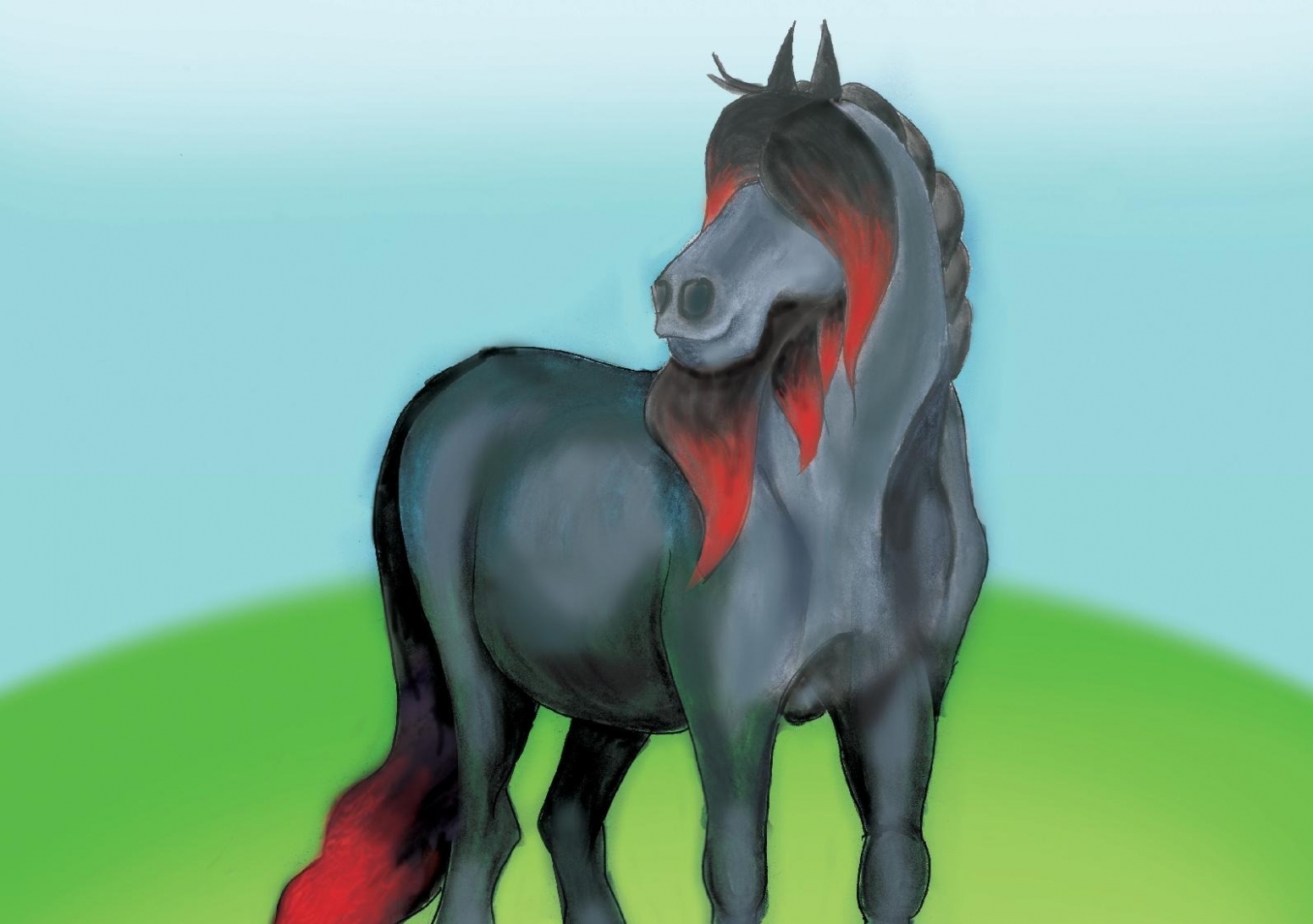 There is a registry for Friesian horses which dictates what makes a purebred Friesian. We’re not sure about George’s parentage, but he seems to mark all the boxes being pure black, of a certain minimum height, with feathers on his hooves….basically he has furry feet and legs. He’s going a little grey now, but then so do all who age gracefully.